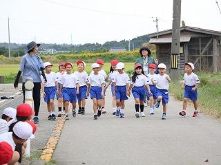 涼しく走りやすい天候の中、子どもたちは一生懸命にゴール目指して走り抜きました。たくさんの保護者の皆さんや先生方、大海こども園の園児たちの声援を受けて、最後まであきらめずに走る子どもたちの姿がとてもすてきでした。今までの練習の成果が十分発揮されていたと思います。大海っ子1人1人が頑張りました!!