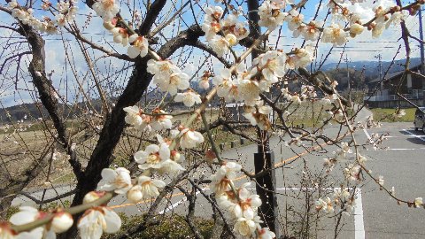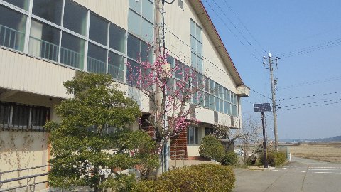 なんとめでたいのでしょう。大海小学校の梅の木が同時に紅白の花を咲かせています。今週は卒業式、まるで卒業生の旅立ちを祝福しているかのようです。
