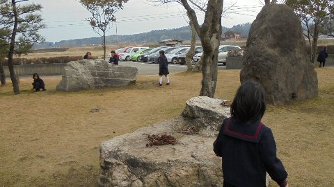 1年生の教室では、給食を食べていたとき歯が抜けた子がいました。みんなまわりに集まってきて、ああだこうだと歯の始末について・・・2階の廊下ではこんなに寒くても水が冷たくてもしっかり歯磨きしている4年生に会いました。