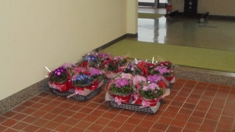 入学式を前に細川さんがたくさんの花を活けて下さいました。玄関はもちろん会議室や控え室にも飾らせていただきます。ありがとうございます。