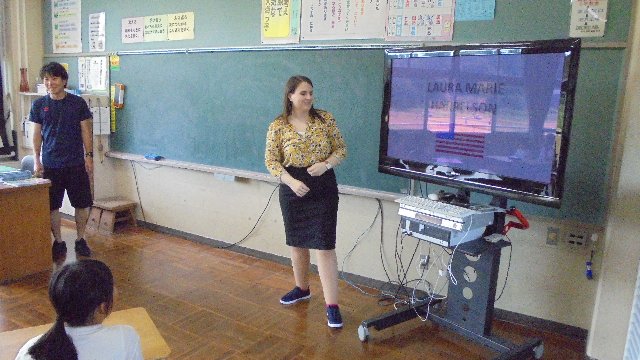 今週新しいALT(外国語講師)のローラさんが着任しました。出身はアメリカです。アメリカと言ってもとっても広いですね。これからいろいろ聞いて仲良くなっていきます。子どもたちに紹介するのが、子どもたちに英語を教えてもらうのが楽しみです。