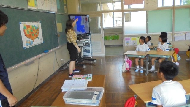 6年生が外国語活動を行っています。先生のシャンさんはいつも明るく楽しく英語を教えて下さいます。