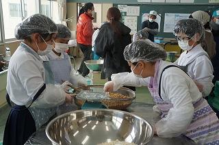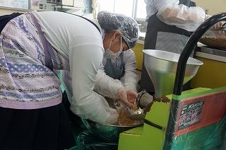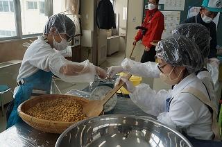 1/28 3・4年生:味噌づくり 投稿日時 : 01/29 HP 3、4限目に味噌づくりの先生・髙﨑さんのご指導の下、味噌づくりを体験しました。1学期に大豆を畑に植え、2学期に収穫した大豆を使って、3学期はいよいよ味噌づくりです。2時間ほど蒸した大豆を子どもたちでかき混ぜながら冷ました後、機械を使ってミンチ状にし、塩、麹と合わせてかき混ぜ、だんご状にして桶に投げ入れる作業をしました。 子どもたちはテキパキ動いていたので、思ったよりも早く作業を終えることができました。髙﨑さん、本日もご指導ありがとうございました。 Tweet {{options.likeCount}} {{options.likeCount}} 0 コメント