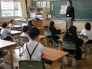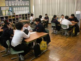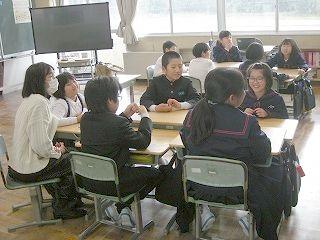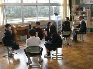 「アドジャン・トーク」は、身近なテーマで会話を楽しみながらお互いをよりよく知るためのコミュニケーション活動です。グループのみんなで「アド・ジャン!」と言いながら「グー」または指1本から指5本までのいずれかを出し、出された指の合計数にしたがって、その数字のお題に答えながら会話します。大海小では、よりよい人間関係づくり、コミュニケーション力アップのために行っています。子ども達はお題に対する友達の答えを楽しみながら聞いていました。これまで知らなかった相手のことをより深く知ることができました。1人1人の思いや考えが尊重される学級・学校になることが、大海小職員の願いです。