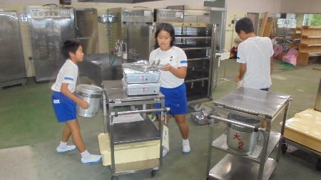 健康委員会は、保健についてみんなにお知らせするだけで無く、給食の後始末の手伝いも毎日しています。配膳室で昼休み当番として全校の食器を給食センターへ運ぶための世話をします。メンバーの皆さん毎日ありがとう。