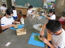 6年生は、市役所スポーツ文化課の方から教えていただきながら土器づくりに挑戦しました。初めてながらなかなかの作品に仕上がりました。9月2日に焼き上げるのが楽しみです。