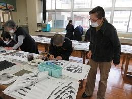 6年生は水墨画家として有名な吉田佐蘭先生に教えていただき、水墨画に初挑戦しました。初めて体験する学習でしたが、丁寧に教えていただきながらなかなかの出来の「丑」作品が完成しました。