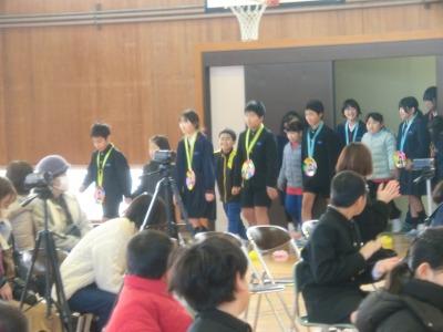 今年も早1か月が過ぎました。1限目に2月の全校集会を体育館で行いました。まず、「税のポスター」と「校内書初め大会」「校内百人一首大会」の表彰伝達がありました。続いて1月の生活目標の振り返り、2月の生活目標「友達のよさを見つけよう」についてのお話があり、最後に1月の歌「この星に生まれて」を全校で歌って終わりました。とても素敵な歌声で、2月も頑張ろうと思える素敵な集会でした。
