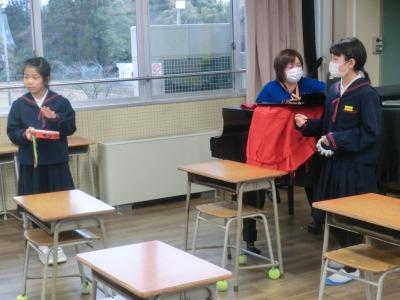 5限目には、6年生が卒業式で胸につけるコサージュ作りをしました。地域でフラワーアレンジメントを教えている西田千恵子先生に今年もご指導していただきました。とても楽しそうに作業している様子が微笑ましかったです。