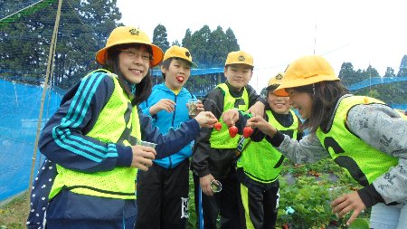 2年生が畑の名人(先生)に野菜の植え方を習いました。名人は瀬戸町の盛戸さんです。全日には畑周りの草刈り、当日は耕運機持参でおいでくださいました。これから育てる作物は、とうもろこし、きゅうり、なす、枝豆、トマトなどです。植えた後、風が強かったのでナイロン袋で風よけも作ってくださいました。子どもたちも手伝っていました。となりのうねにはサツマイモも植えました。早く大きくならないかな。盛戸さんありがとうございました、一生懸命お世話します。