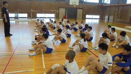 今月の歌や生活目標のふり返りに加えて今日は特別メニューが2つありました。一つは来週の月曜日の県下学童話し方ー会に出場する2年生の鍛冶澤さんともう一つは今週の水曜日の器械運動交歓会に出場する4年生の校内リハーサルです。