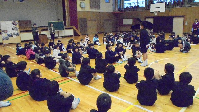 4年生は冷蔵庫のような体育館で寒さに負けず元気良く体育です。跳び箱です、跳べるようになったのでしょうか。