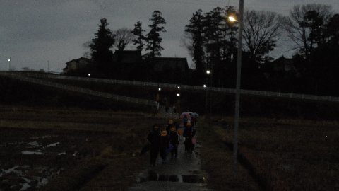 朝の登校、天候が悪くなり歩きづらい日が続いています。身を寄せ合って、高学年が低学年をかばい協力して登校する姿はほほえましいものです。集落から抜けて、写真のこのあたりが吹きさらしで一番の難所です。学校に到着するとほっとします。