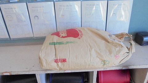 写真を見て下さい。ロッカーの上にのっているのは米袋ですが、中身は3年生が春から丹精込めて作った大豆です。