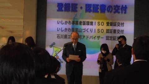 昨日、石川県の環境やエコに配慮している団体の表彰式に出席してきました。大海小学校は環境ISOに加え、石川県版里山ISOを取得し努力してきました。