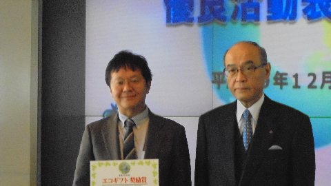 式では、谷本知事より奨励賞としてのエコギフトの目録をいただきました。中身はエコ教育セットとしてタブレットiパッドをいただきました。活用していきます。