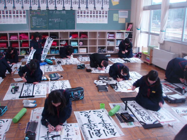 書き初めは、1月2日に書くことが従来からの習わしですが、学校では始業式の日に書くことが普通です。書き初めをしている児童はどの学年の子も真剣でした。2限目に行い、すぐに教室横の廊下に張り出して展示しました。放課後やお仕事のご都合がつきましたら、保護者・地域の皆さんも児童の書き初めを見に来てください。