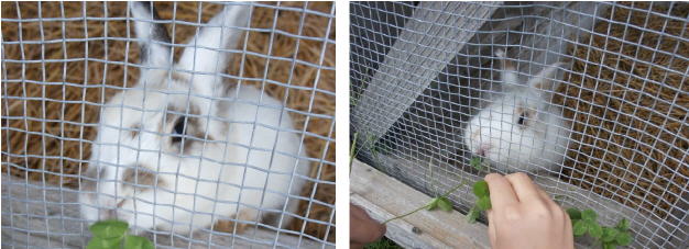 以前に飼っていたウサギの色と少し違って斑が入っています。学校の近くに来ることがありましたら、飼育小屋の中にいるウサギを見てください。とってもかわいいですよ。