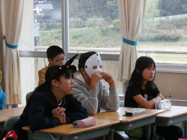 10月31日は、ハロウィンです。外国語活動では、ALTのブリーナさんからハロウィンについて少し勉強して、子どもが仮装して学習しました。6年生ともなれば、仮装は上手です。そして、ハロウィンまつわる言葉、猫やカボチャや骸骨などの言葉を覚え、カードゲームを全員でして楽しみました。