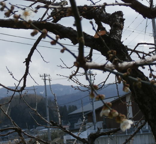 「梅一輪いちりんほどの暖かさ」これは、皆さんもご存じの通り、松尾芭蕉の弟子、服部嵐雪が詠んだ俳句です。学校の体育館前に梅の木があります。今朝、梅の花が咲きました。この辺りでは、梅が咲き、次に桜が咲き、そして、桃が咲いていきます。