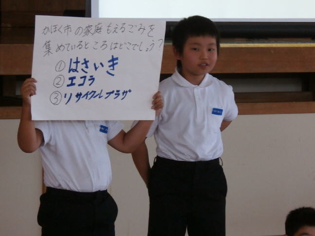 児童会の企画運営委員で「第1回大海っ子集会」が行われました。学期に1回、昼休みに学年発表と委員会発表をします。今回、4、5年生、体育、健康委員会の4つ発表がありました。4年生は、「エコラ」の見学に行って学習したこと、5年生は「米づくり」について学習したことを発表しました。体育委員会は体育館のボールの使い方、健康委員会は「手の上手な洗い方」をしました。その後の感想タイムでは、1年生から6年生まではっきりと大きな声で発表してくれました。児童の成長を感じ取ることができました。次回、2学期を楽しみにしています。