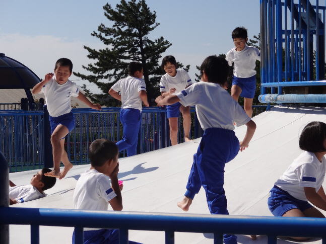 秋晴れの下、絶好の遠足日和になりました。低学年は高松運動公園、中学年はななつか中央公園、そして、高学年は宝達山頂を目指しました。