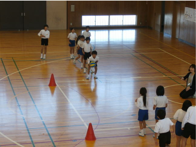 昼休みにスポチャレいしかわの種目「シャトルボール」を全学年が行いました。高学年になるにつれてボールを投げる距離が遠くなります。ある距離を2つのグループに分けお互いに向き合ってキャッチボールをして得点を積み重ねていきます。ノーバウンドでキャッチできると2点、受け取れば1点です。3分間で得点を競います。詳細はスポチャレいしかわのホームページをご覧ください。