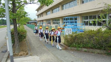 今日もみんなで仲良く帰ります。 集団下校