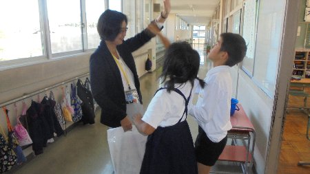 教室から大きな声が聞こえてきます。シャンさんの英語の授業、みんないい反応をしています。