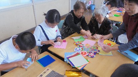 認知症予防理解教育、いちご会との交流も3回目になりました。今回は、一緒に折り紙・・・とっても難しい作品の作り方を子どもたちが習いました。いちご会の皆さんは大変上手、そして教え上手。感心しました。