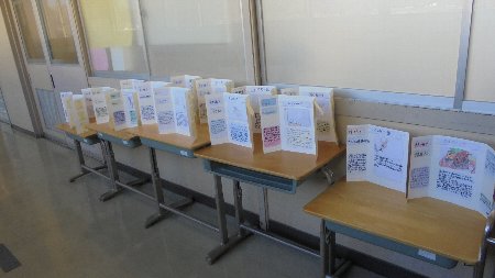 4年生は、短歌を作り掲示しました。5年生は6年生と同じくショーウィンドウで国語の学習をまとめました。先日まで立てかけてありましたが、こうやって貼ってみると本当の窓みたいですね。授業参観でごゆっくりご覧下さい。