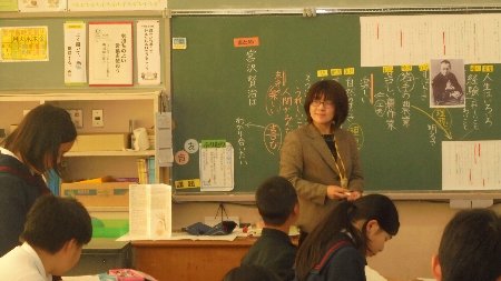 今週の金曜日に大海小を会場に河北郡市内の6年担任が集まり研修会を開催しました。本校の6年生が宮沢賢治の作品を学習している様子を参観してもらいました。最高学年にふさわしい深まりのある授業でした。大勢のお客さんの前で普段通りできることがすばらしいです。どの子も文学にしっかり触れ、宮沢賢治のメッセージについて考えることができていました。