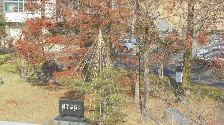 玄関前の松に雪つりがされました。若緑の瀬戸造園さんが土日の間に。子どもたちは、そのまわりで上から下まで眺めていました。「家と一緒。」「金沢の兼六園みたい」