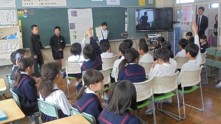 各クラスで子どもたちと一緒に給食を食べていただきました。グループに、大きな輪になって、話が弾んだようです。手紙と一緒にシクラメンの花を持って帰ってもらいました。4年生が味噌(3年生の時に地域の方と一緒に作った)もプレゼントしに各教室を回りました。