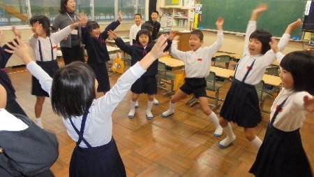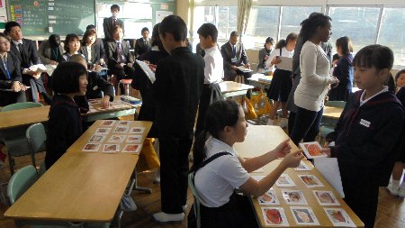 こういった状況を見据え、先日4年生の外国語学習を公開し、高松小と高松中の職員にも参加を呼びかけ、研究会を実施しました。たくさんの先生方が見守る中、4年生が担任、シャン先生と楽しく生き生きと英語を学ぶ姿を参観できました。