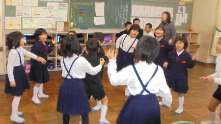 これは、2年生朝の会の様子です。見て下さい、今月の歌を踊りながら歌っています。体いっぱい使って音楽に合わせて喜び?を表現しています。歌はサンタにちなんだもの、クリスマスが待ち遠しい気持ちがこの元気さにこもっています。プレゼント・・・(笑)