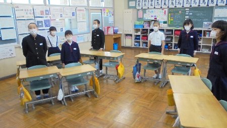 今朝4年教室をのぞくと・・・マスク、マスク、マスク・・・・全員がマスクをつけて予防していました。もちろん担任の先生も!