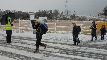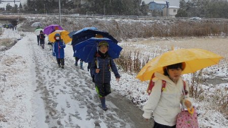 雪の朝の登校風景