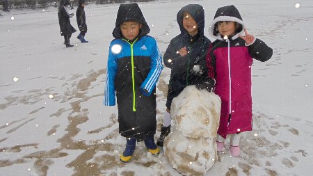金曜日はちょっぴりしか雪が降らなかったのに、子どもたちは大喜び。登校するやいなや、さっそく外で雪遊び。うっすらとしか積もらなかったのに、見事に雪だるまを作りました。中学年は雪合戦に夢中でした。元気で遊ぶ子どもたちの姿、いいですね。