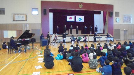 地域の方を招待して学習発表会を行いました。もちろん保護者の方にもご案内して・・・地域授業参観です。テーマは「地域」とのかかわりについてです。1、2年生はお隣の大海保育園の園児を楽しませました。そのためにはどうすればよいか考えたり用意したりしました。3年生以上は総合的な学習の時間で調べた地域のことについてまとめて発表しました。学年間で聞き合えたことも成果でした。