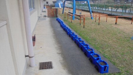 冬休みの間に1年生の植えたチューリップの芽が出ました。まだ指のつめほどの大きさです。来週登校してきた1年生がこれを見て歓声を上げる姿が目に浮かびます。それまでに全部のチューリップが芽を出してくれるといいな。