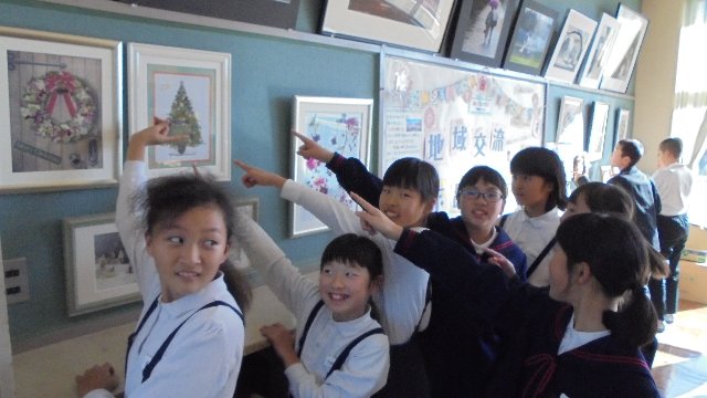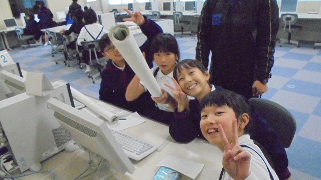 5年生、コンピュータ室でふるさと発表集会の準備。隣の教室で押し花の作品が新しくなったのを見て鑑賞。どの子の顔にも笑顔がいっぱい。とってもすてきです。勉強、学校生活は楽しくなくっちゃね。