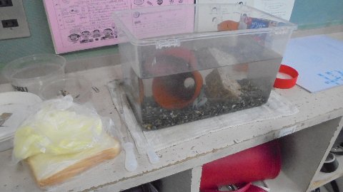 5年教室のザリガニです。色が白い・・・神秘的なブルー?心を込めてお世話しているので寒くなってもこの通りです。隠れ家を作ってやり、下に小石を引き詰めて、えさやりも欠かさず、とっても生きものにやさしい5年生です。この愛情に応えて長生きしてほしいものです。