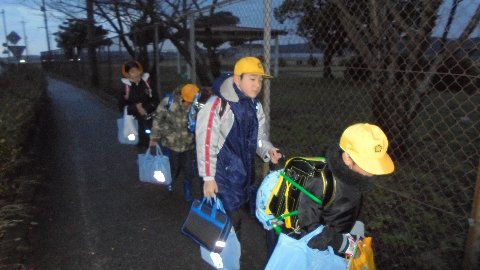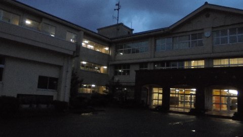 真っ暗でした。厚く垂れ込めた雲のせいで登校時刻はまだ暗かったです。校舎の電灯が闇に浮かび上がっていました。暗がりの登校でしたが、夜中吹き荒れていた風や雨が収まっていて幸いでした。防犯パトロール、地域の皆さん、安全指導ありがとうございました。今年もよろしくお願いします。