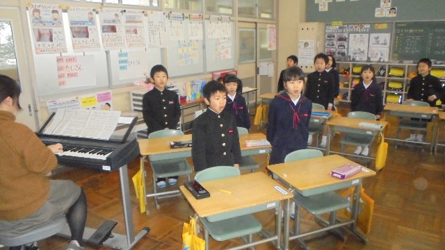 元気に今日も朝の歌を!体いっぱいで歌っている姿がかわいいですね。明日の全校集会でも大きな声で歌えそうですね。