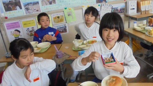 今週唯一の登校日、月曜の給食風景です。3年生がインフルエンザで欠席が目立っています。 写真のサイズ大きくしてあります、ダウンロードどうぞ。