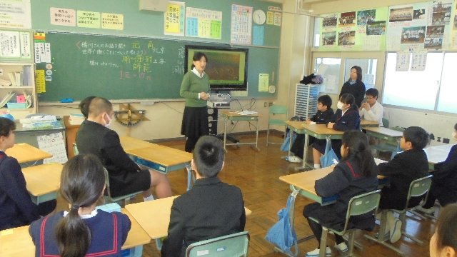 今日は、6年生の授業に外部から先生をお招きしました。海外、中国の大学で日本語の先生をしている橋川さんにおいでいただきました。「21世紀を生きる君たちへ」「世界は広い、行ってみたいな海外へ」と欲張って道徳と社会科のWで出張授業をしていただきました。夢を持って人生を生きること、日本だけに人が住んでいるのではない、世界の人々と仲良くしていくことの大切さなどを学習しました。授業後子どもたちは、海外のいろんな国に行ってみたそうでした。90分授業、すごい集中力で素晴らしかったです。