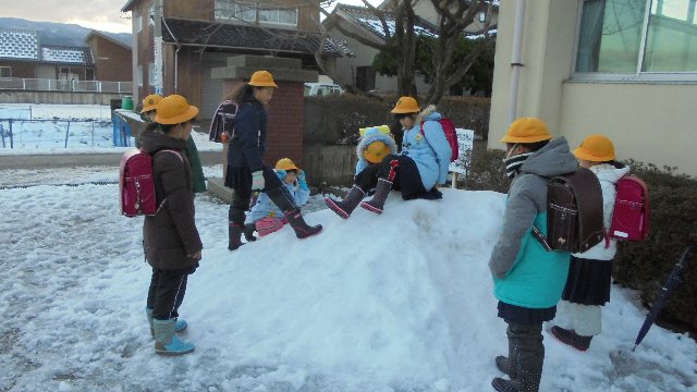 みんな無事登校できました。大雪のための休校があったので二日ぶりです。何をして過ごしたのでしょうね。この様子を見ると、家で雪かきが上手になったんだなぁと思いました。ありがとう、除雪機具が足りなくてなかよく交代で使うことができましたね。