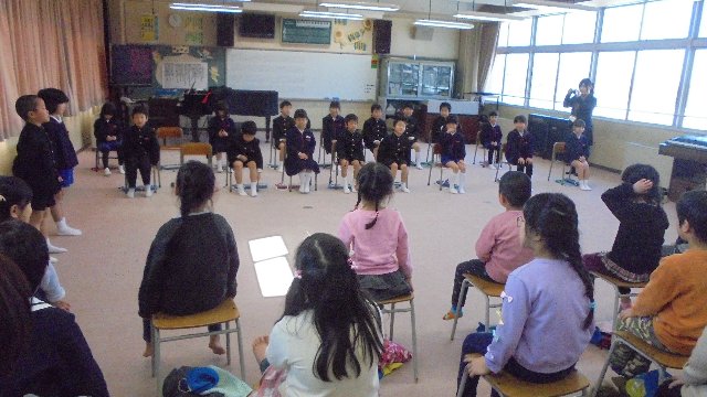 かぜの流行を考慮して、あたたかい音楽室で2月の集会を実施しました。暖かいと姿勢の乱れが心配ですが、大海っ子はどこでもきちんと人の話を聞くことができます。生活目標について毎月話しています。お家でお話が聞けているか話題にしてみて下さいね。