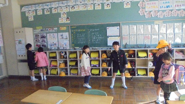 みんな真剣にできました。1階の子どもたちは保健室、2階の子どもたちは、職員室、3階の子どもたちはコンピュータ室に避難し中から施錠をして息を潜めました。最終避難は会議室でしたがどの子も最後まで真剣な顔で訓練することができました。写真の表情を見て下さい、すばらしかったです。